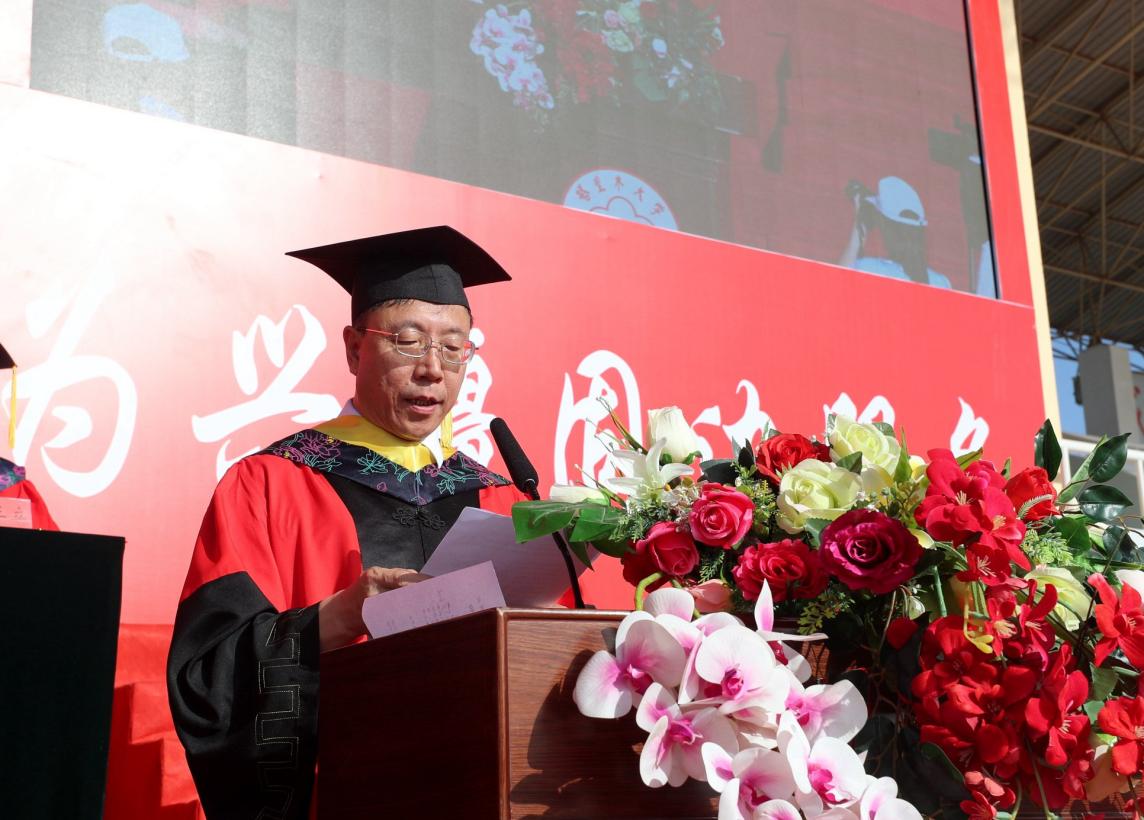 相聚不知時光短,別離才知情意濃。縱有萬般不舍,仍將含笑揮別。教師代表、動物科學與技術學院黨委書記、博士研究生導師高慶華教授發言,對學業有成即將踏上新征程的同學們表示祝賀和祝福。鼓勵畢業生自強不息、求真務實;甘于奉獻、勇擔大任;堅韌不拔、奮發有為;學會感恩,勿忘母校。希望畢業生擁有樂觀的心態、健康的體魄、滿意的工作、幸福的家庭,也希望畢業生常與母校聯系,?;啬感?纯?。