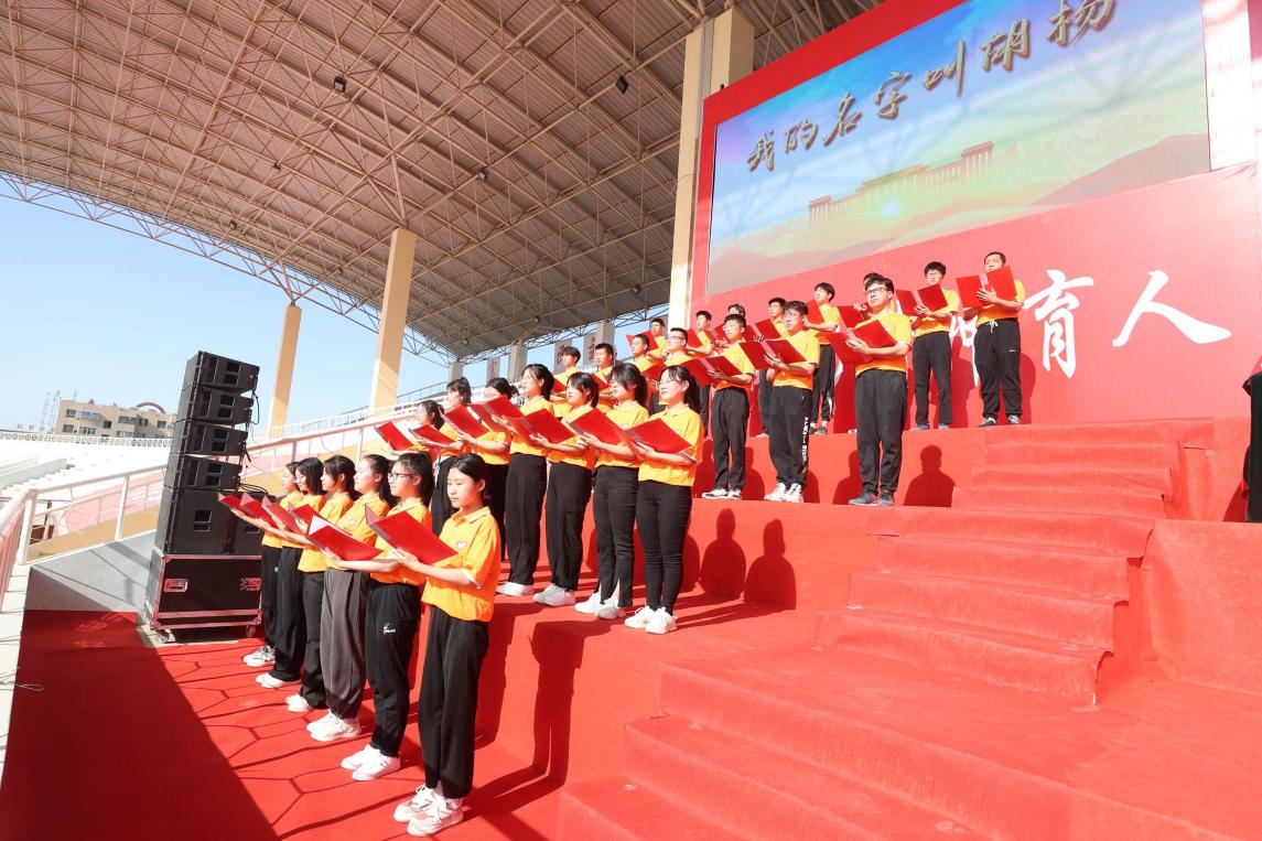 “扎根邊疆,獻身邊疆,我的名字叫胡楊;愛國愛疆、擔當奉獻,我的名字叫胡楊……”在校生代表獻詞《我的名字叫胡楊》,表達了胡楊學子自覺扎根邊疆、奉獻邊疆的堅定信心和決心。