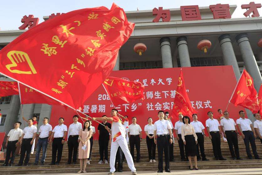 用腳步丈量祖國大地,用眼睛發(fā)現(xiàn)中國精神,用耳朵傾聽人民呼聲,用內(nèi)心感應(yīng)時代脈搏。7月7日上午,伴隨著雄壯的奏唱國歌聲,塔里木大學(xué)2023年“萬名師生下基層”暨暑期“三下鄉(xiāng)”社會實踐出征儀式在綜合樓前舉行。