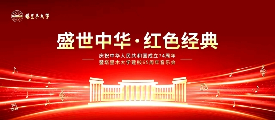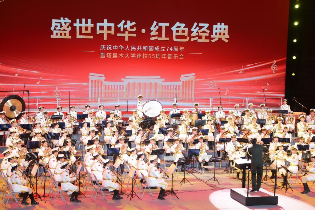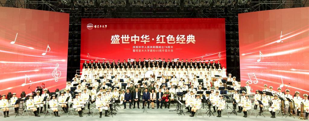 六十五載篳路藍縷,六十五年風華正茂。在中華人民共和國成立74周年、塔里木大學建校65周年之際,9月29日晚,塔里木大學“盛世中華 紅色經典”慶祝中華人民共和國成立74周年暨塔里木大學建校65周年音樂會在新體育館火熱上演。