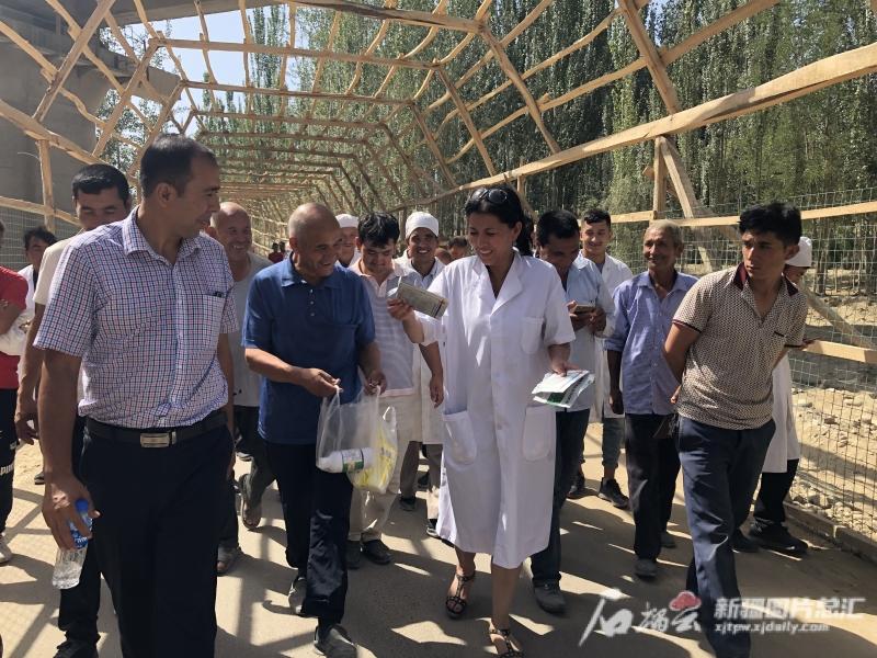 塔里木大學動物科學學院教授格明古麗·木哈臺(左三)深入基層開展科技服務。余明星攝
