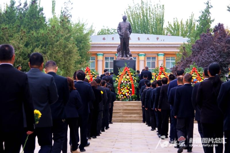 9月30日,塔里木大學紅色文化廣場王震將軍銅像前,各界代表前來瞻仰、獻花。余明星攝