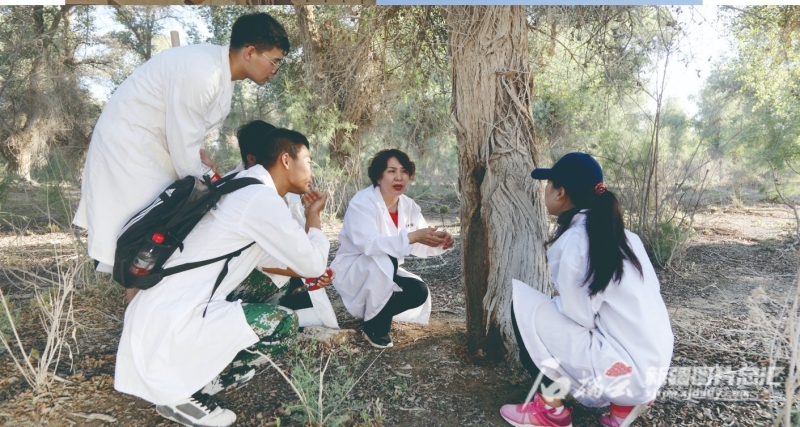 被譽為“胡楊公主”的塔里木大學生命科學與技術學院教授李志軍(右二)帶領學生在野外考察。余明星攝