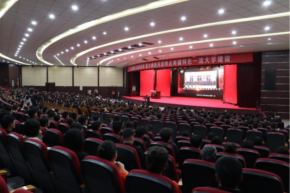 10月5日,塔大師生齊聚塔里木大學(xué)報(bào)告廳內(nèi),慶祝塔里木大學(xué)建校65周年。胡楊網(wǎng)李雨浪 攝