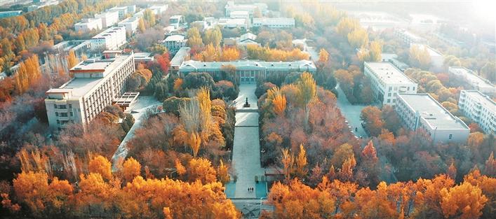 塔里木大學校史館秋景航拍(資料圖片)。 張斌峰 攝