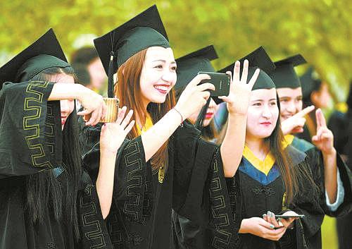 塔里木大學幾名即將畢業的大學生在校園里合影留念,當天學校組織畢業生拍攝畢業照(資料圖片)。 兵團日報全媒體記者 王志清 攝