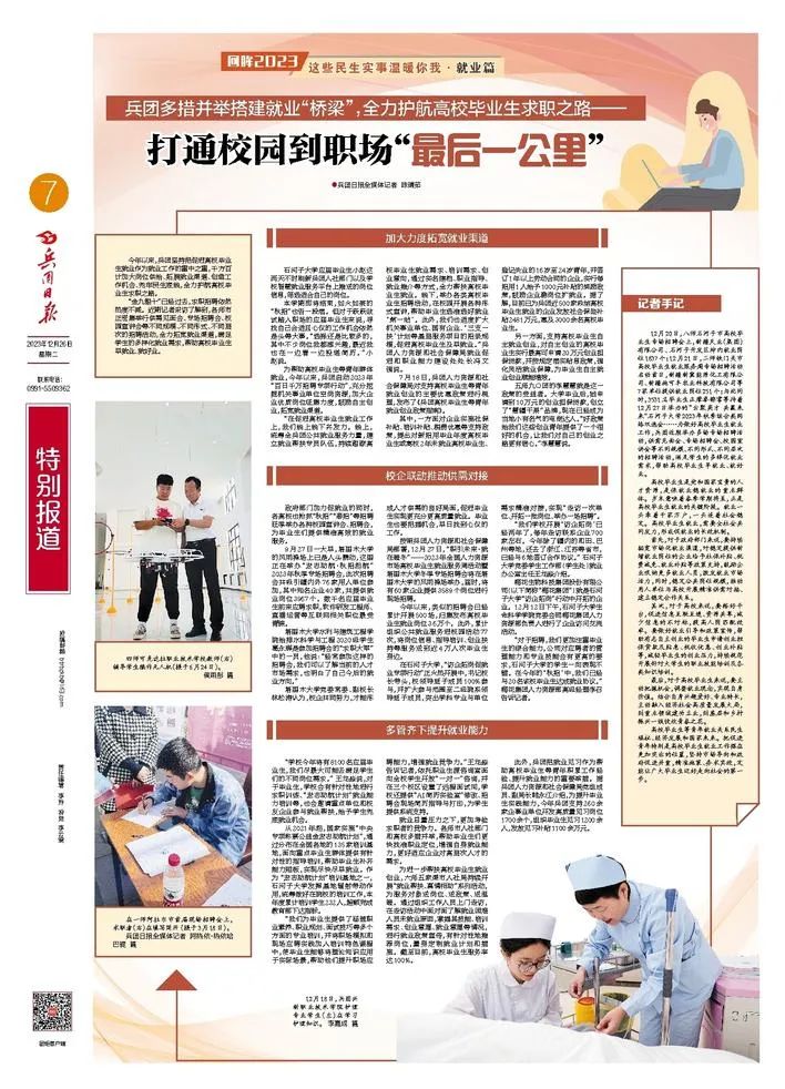 今年以來,兵團堅持把促進高校畢業(yè)生就業(yè)作為就業(yè)工作的重中之重,千方百計加大崗位供給、拓展就業(yè)渠道、創(chuàng)造工作機會、兜牢民生底線,全力護航高校畢業(yè)生求職之路。