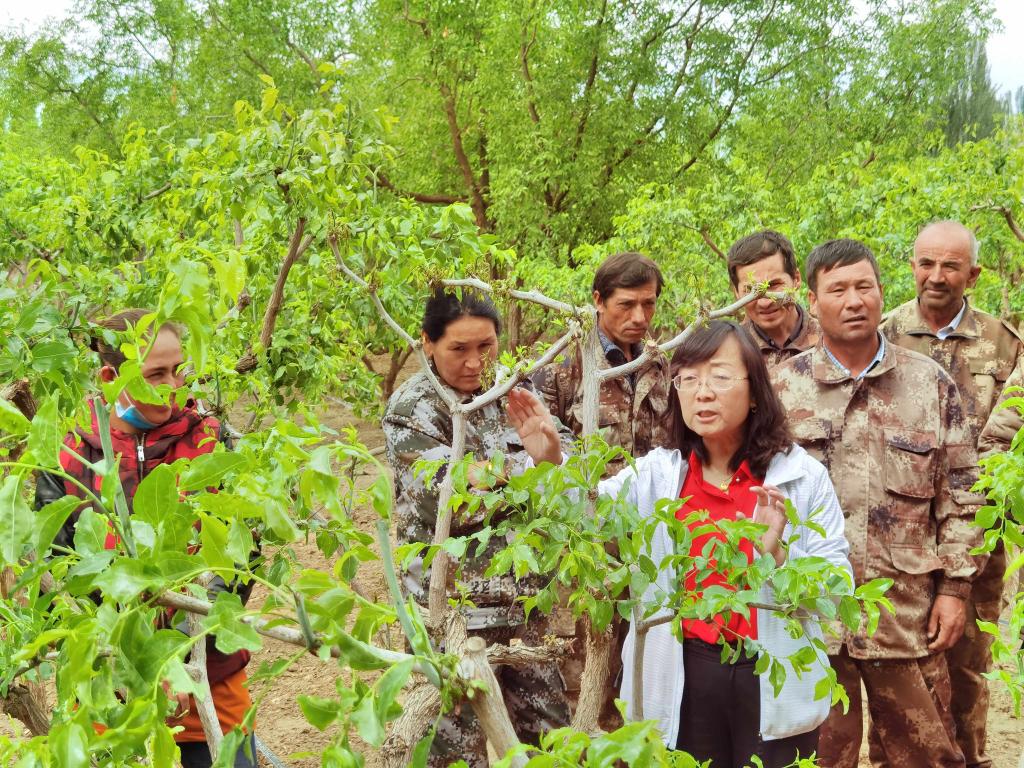 近期,吳翠云帶領(lǐng)團隊奔赴新疆生產(chǎn)建設(shè)兵團第十四師,走遍各團場連隊,開展棗樹修剪和提質(zhì)增效的現(xiàn)場培訓(xùn),“手把手”“一對一”把技術(shù)送到百姓家門口。