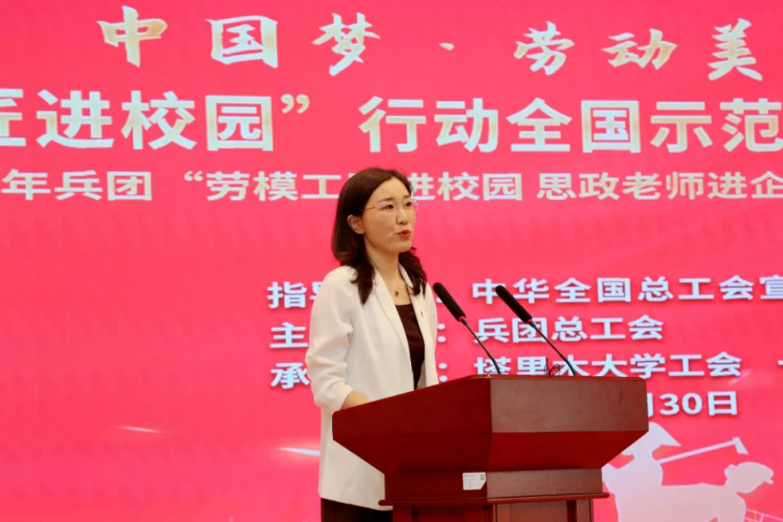 5月30日,由全國總工會宣傳教育部指導(dǎo)、新疆生產(chǎn)建設(shè)兵團總工會主辦的“勞模工匠進校園”行動全國示范活動兵團塔里木大學(xué)專場成功舉辦。2024年兵團“勞模工匠進校園 思政老師進企業(yè)、進連隊”宣講活動也同步啟動。兵團總工會黨組成員、副主席黃少峰出席活動并在宣講活動啟動儀式上講話。