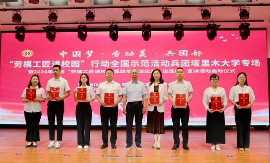 5月30日上午,由全國總工會宣傳教育部指導、兵團總工會主辦的2024年兵團“勞模工匠進校園 思政老師進企業、進連隊”宣講活動啟動儀式暨塔里木大學專場活動舉辦。活動在塔里木大學設主會場,各師市總工會共設立13個分會場同步進行,在全國總工會、兵團總工會、塔里木大學新媒體平臺同步直播。