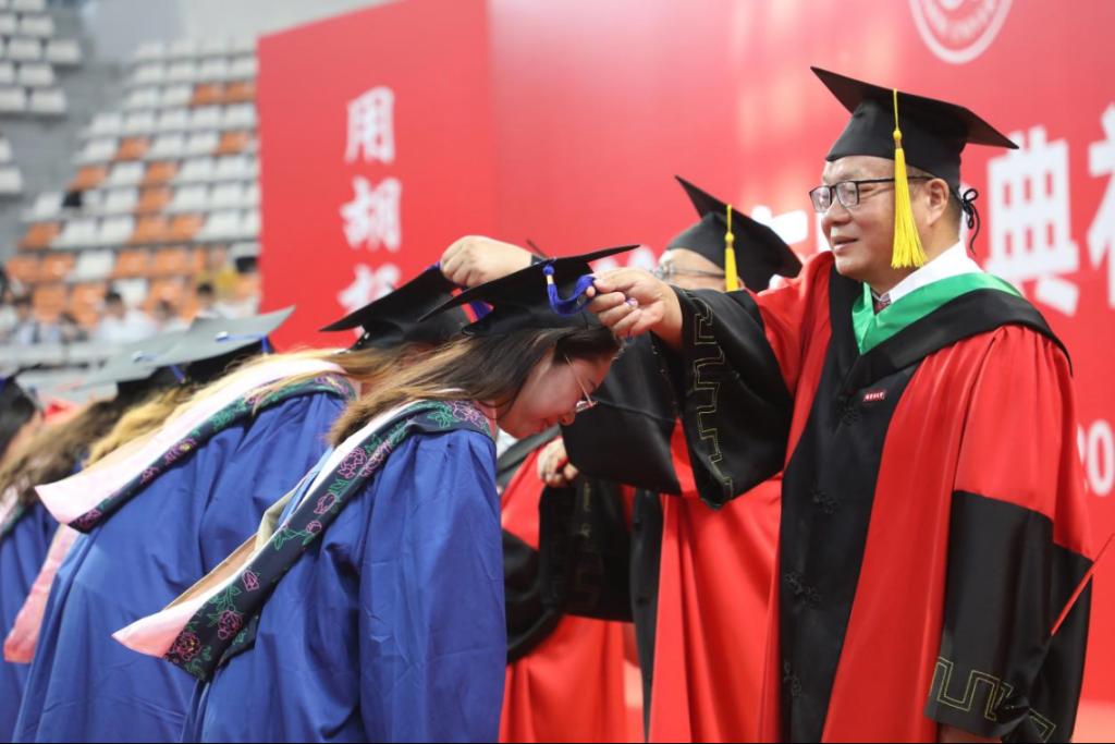 其間,本碩博畢業生、校級優秀畢業本科生、研究生代表依次上臺領取畢業證書、學位證書和榮譽證書,接受教師的撥穗正冠和深情祝福,聆聽母校的最后一課。