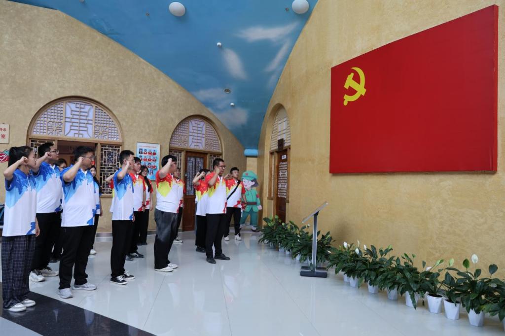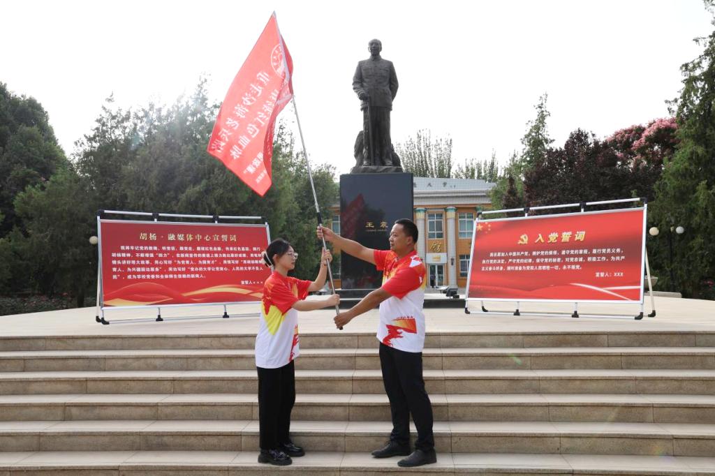 “我志愿加入中國共產黨,擁護黨的綱領,遵守黨的章程,履行黨員義務……”師生們舉起右拳,面向黨旗,莊嚴宣誓,表達了對黨和國家的無限忠誠和無比熱愛。