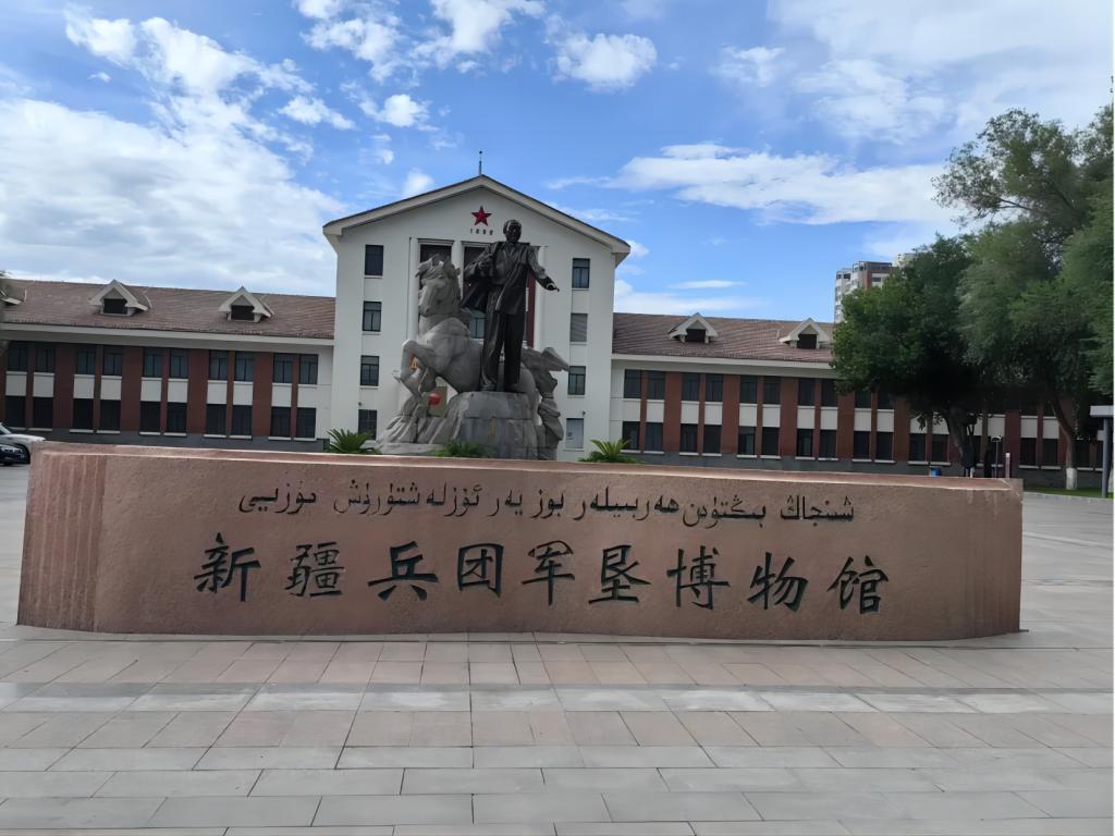 石河子市有著“兵團第一城”的雅號。詩人艾青這樣描述它:“它是這樣漂亮,令人一見傾心,不是瀚海蜃樓,不是蓬萊仙境,它的一草一木,都由血汗凝成。”石河子有著兵團自建的最早工業體系,無處不顯現著自己動手豐衣足食的革命豪情。在那個缺衣少食的年代,用于生產的牲畜、工具也是奇缺。人是最大的勞動力量,四人、兩人、三人人力犁,就這么誕生了,開荒墾地,建房種糧。“軍墾第一犁”的故事被當代人雕塑在廣場,既是歷史的紀念,也是對后人的鼓舞,彰顯了中國共產黨領導下的中國人民和中國軍隊無往不勝的精神。