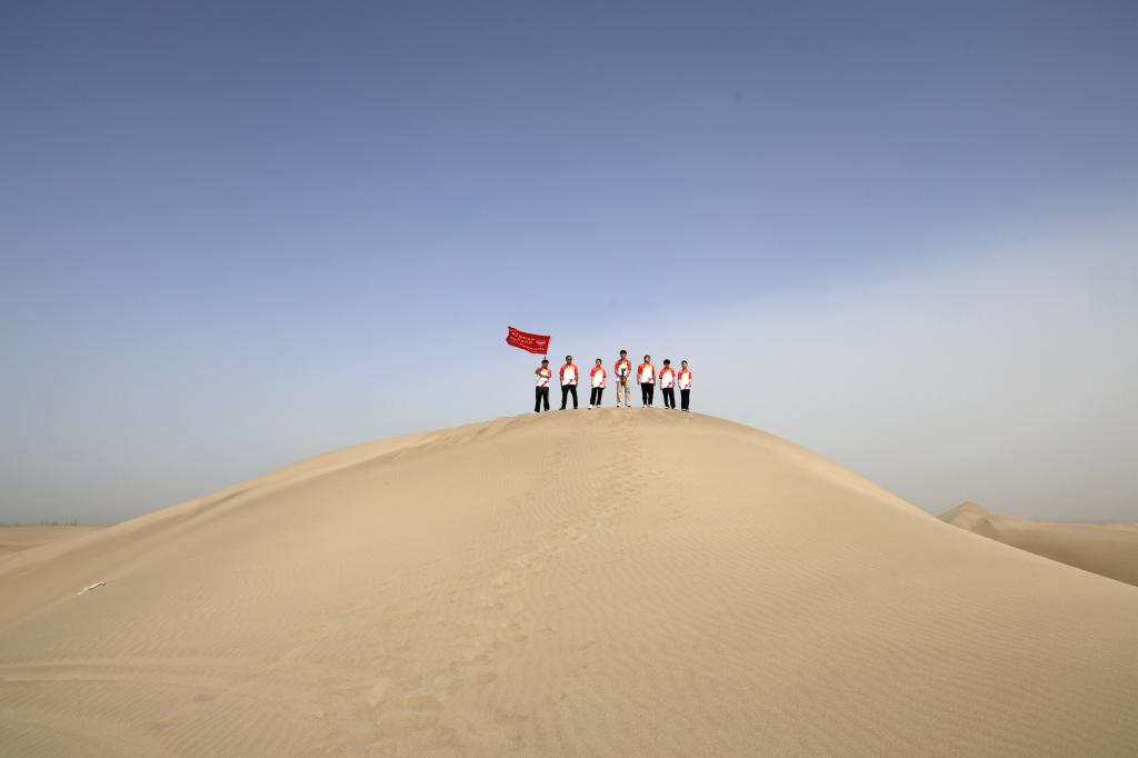 黃沙漫漫,烈日炎炎。隊(duì)員們扛起旗幟,邁起步伐,不畏風(fēng)沙,不怕困難,穿過(guò)連綿不絕的沙丘,走過(guò)一個(gè)個(gè)茅草亭,學(xué)習(xí)體驗(yàn)沙海老兵“黃沙百戰(zhàn)穿金甲,不破樓蘭終不還”的鋼鐵意志,征戰(zhàn)沙漠,薪火相傳。