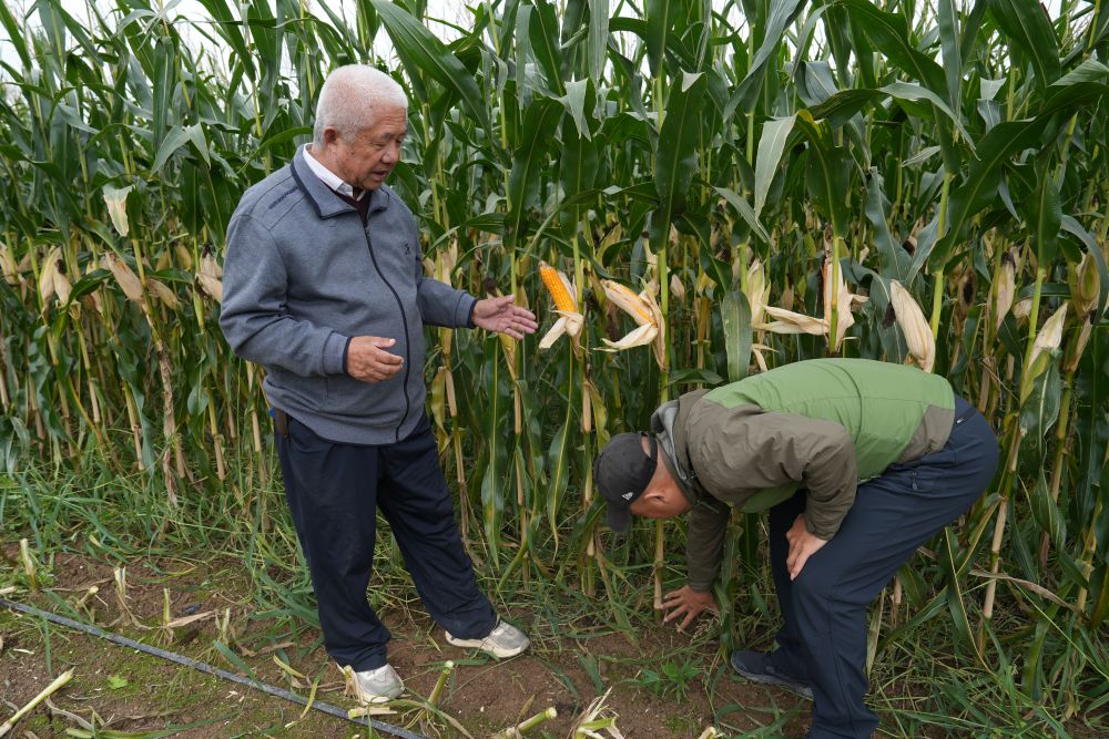 9月底,寧夏吳忠市利通區(qū)金積鎮(zhèn)梨花橋村,一片片籽實飽滿的青貯玉米挺立田間,大型收割機穿梭其中。66歲的農(nóng)業(yè)技術專家楊生明剝開玉米棒苞葉,檢查籽粒成熟情況,收完玉米,馬上就要搶種冬小麥,他負責技術指導。