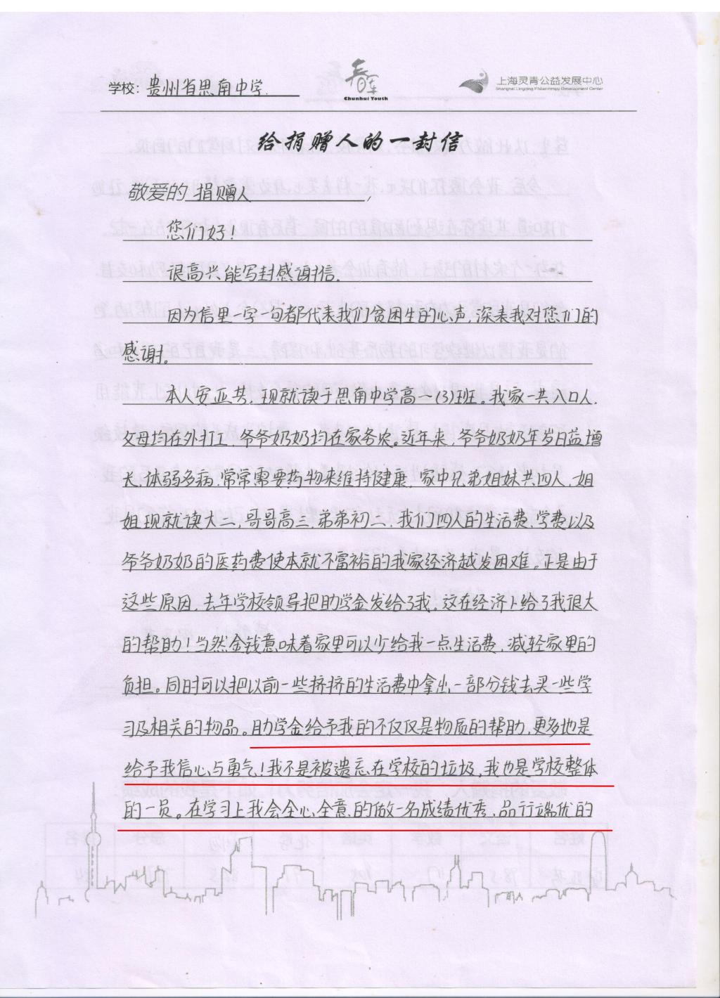 “我會繼續把這份愛傳遞下去,有一份熱,發一份光,但愿所有孩子能如愿求學,完成人生理想,做頂天立地的人。”
