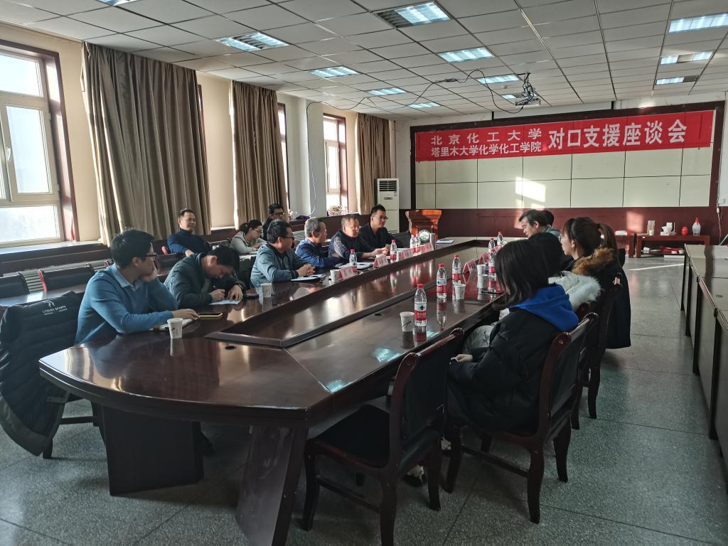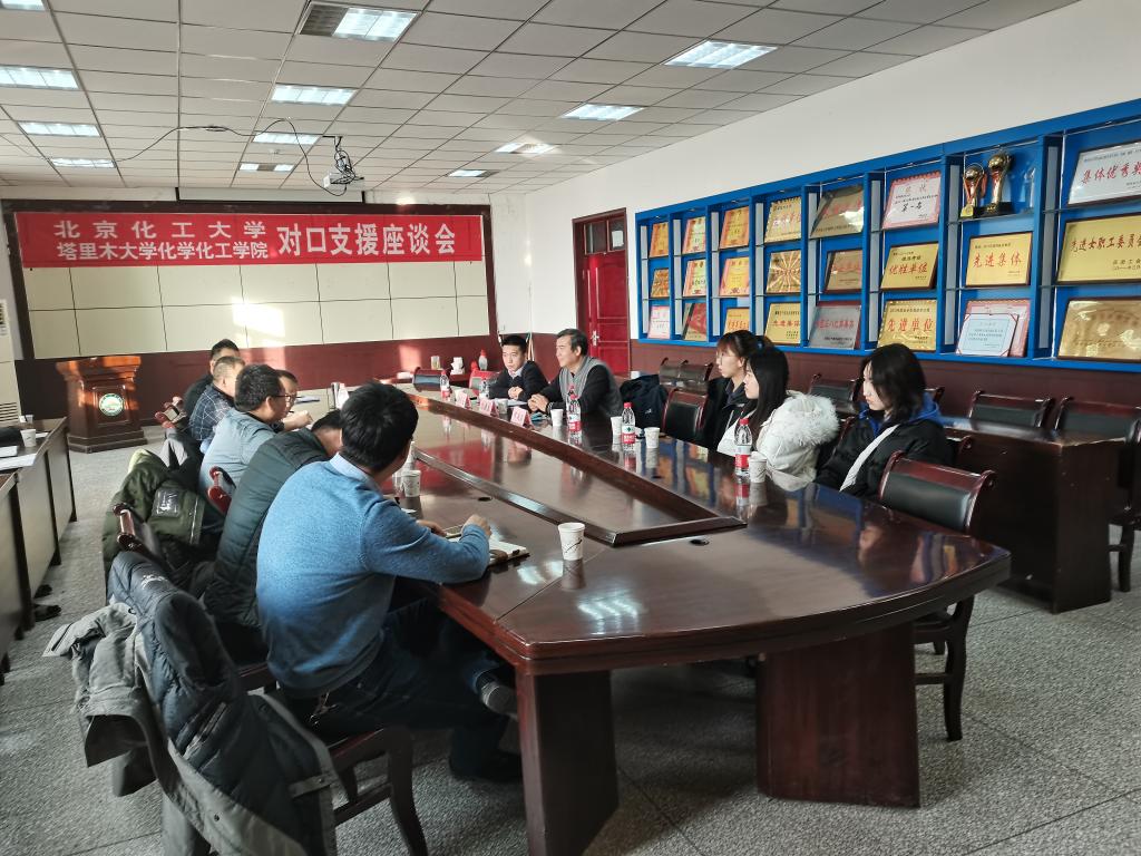 12月24日上午,北京化工大學(xué)國內(nèi)對外交流處部長何雨駿,化學(xué)工程學(xué)院黨委書記陳曉春教授,國家優(yōu)秀青年基金獲得者陽慶元教授等一行5人來校訪問交流,與塔里木大學(xué)化學(xué)化工學(xué)院干部教師代表進(jìn)行座談,并看望援疆干部。會議由化學(xué)化工學(xué)院黨委書記白紅進(jìn)主持,在逸夫?qū)嶒?yàn)樓521會議室召開。化學(xué)化工學(xué)院、生命科學(xué)與技術(shù)學(xué)院、有關(guān)實(shí)驗(yàn)室、各專業(yè)負(fù)責(zé)人及教師代表參加。