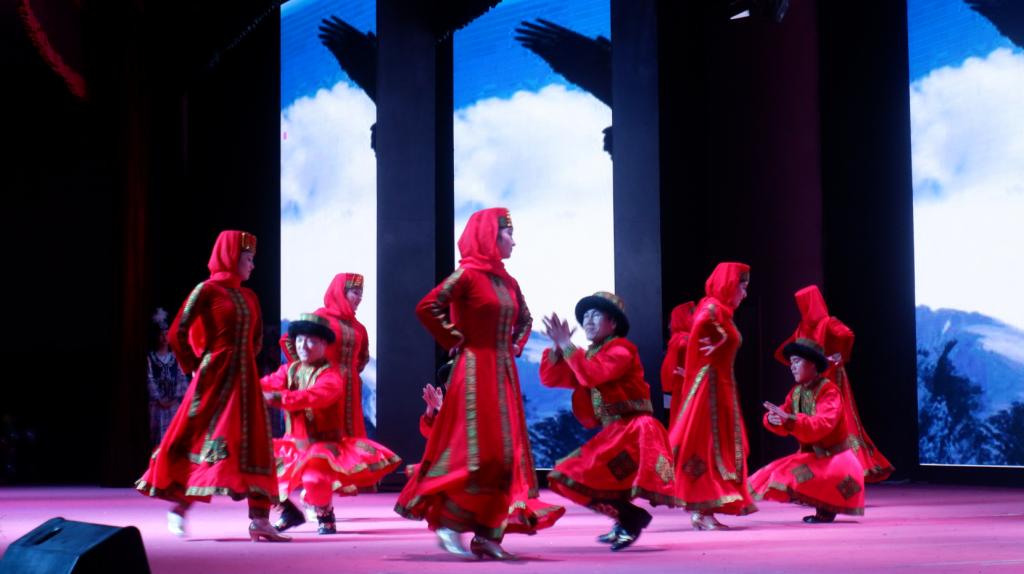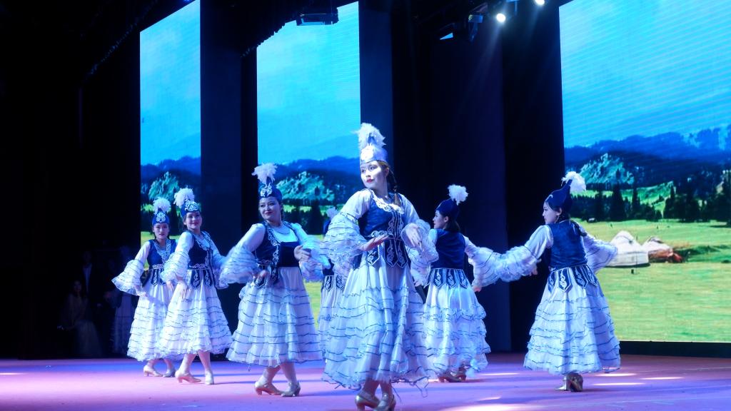 開場舞《萬疆》,突出中國元素,通過現代舞的柔美,表達了對實現中國夢的堅定信心與決心??挂呓治琛镀椒仓贰?,通過歌舞律動,講述了年青一代面對抗疫,挺身而出、眾志成城的家國情懷。舞蹈串燒《攜手相融》,將民族舞融入中華傳統戲曲表演,各族師生同臺演出,將學院各民族共同團結奮斗、共同繁榮發展的生動景象展現的淋漓盡致,贏得觀眾熱烈掌聲。