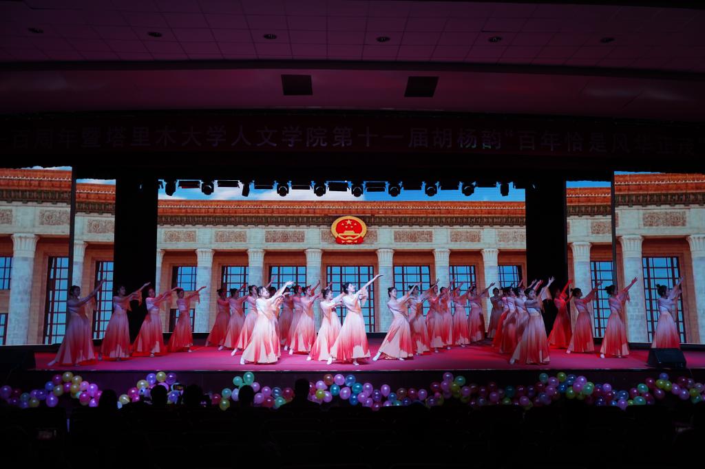 此次胡楊韻晚會以“百年恰是風華正茂”為主題,通過15個高質量的節目,共計200名師生參與表演,生動形象講述了中國故事,飽含深情謳歌了偉大時代,展現人文師生的藝術素養、人文情懷。在歡歌笑語中為全院師生獻上了一場精彩難忘的盛世文藝大餐。胡楊韻主題晚會自1999年舉辦首屆以來,已成為學院賡續紅色血脈,傳承胡楊精神的特色文化品牌,記錄了學院發展的“音”“畫”,記錄了人文學子的風采與成長。