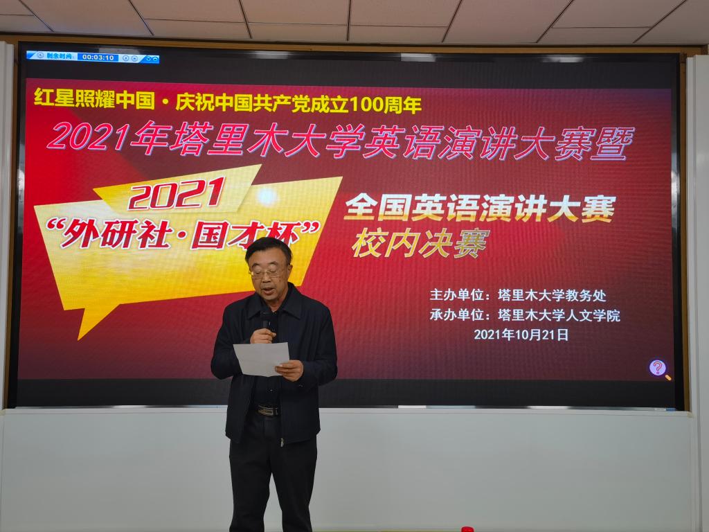 10月21日晚,2021年塔里木大學英語演講大賽暨2021“外研社?國才杯”全國英語演講大賽校內決賽在逸夫樓階教12舉辦。本次演講大賽由教務處主辦,人文學院承辦。人文學院黨委書記張理、院長肖濤、副院長秀梅到場指導。外語系教師擔任評委。