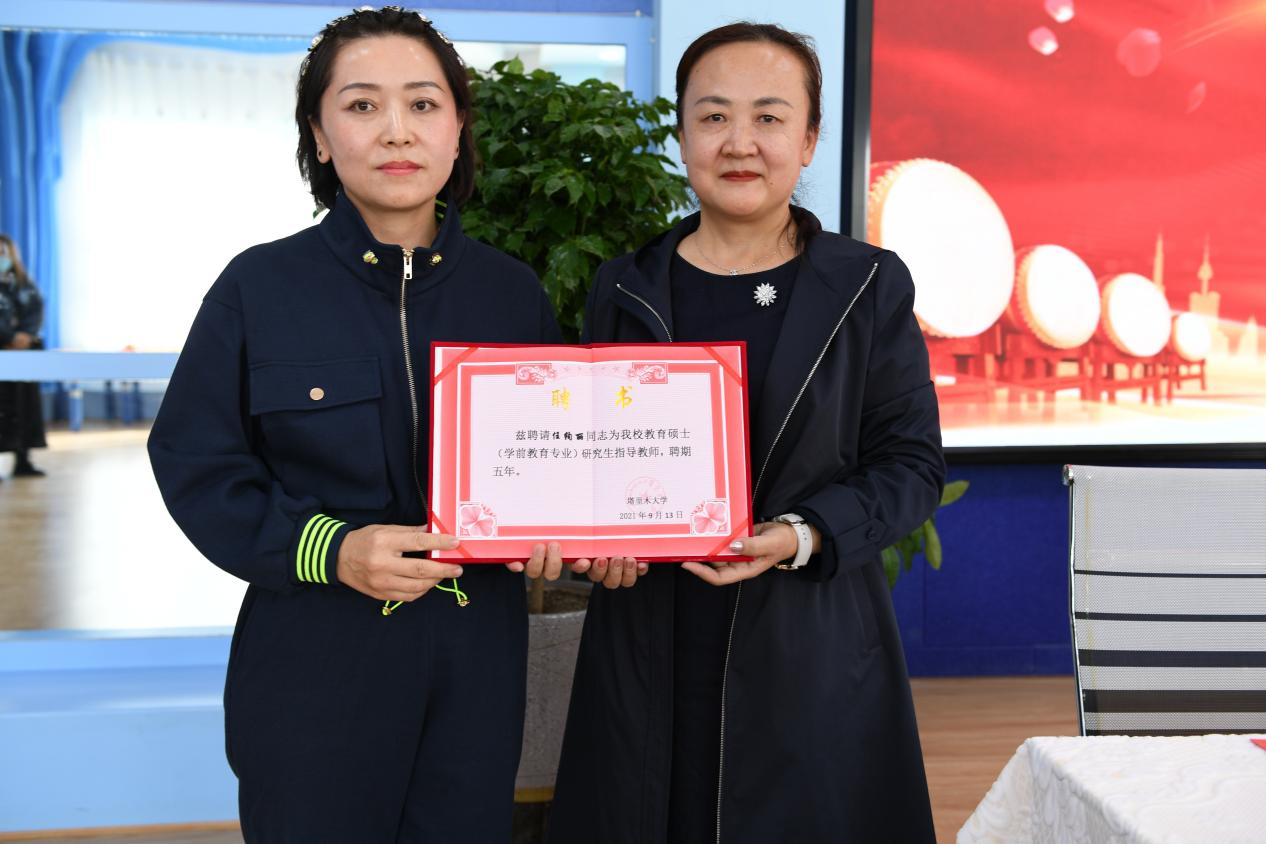 人文學(xué)院聘塔里木第二幼兒園負(fù)責(zé)人任絢麗為教育碩士(學(xué)前教育)研究生導(dǎo)師,并頒發(fā)了聘書。