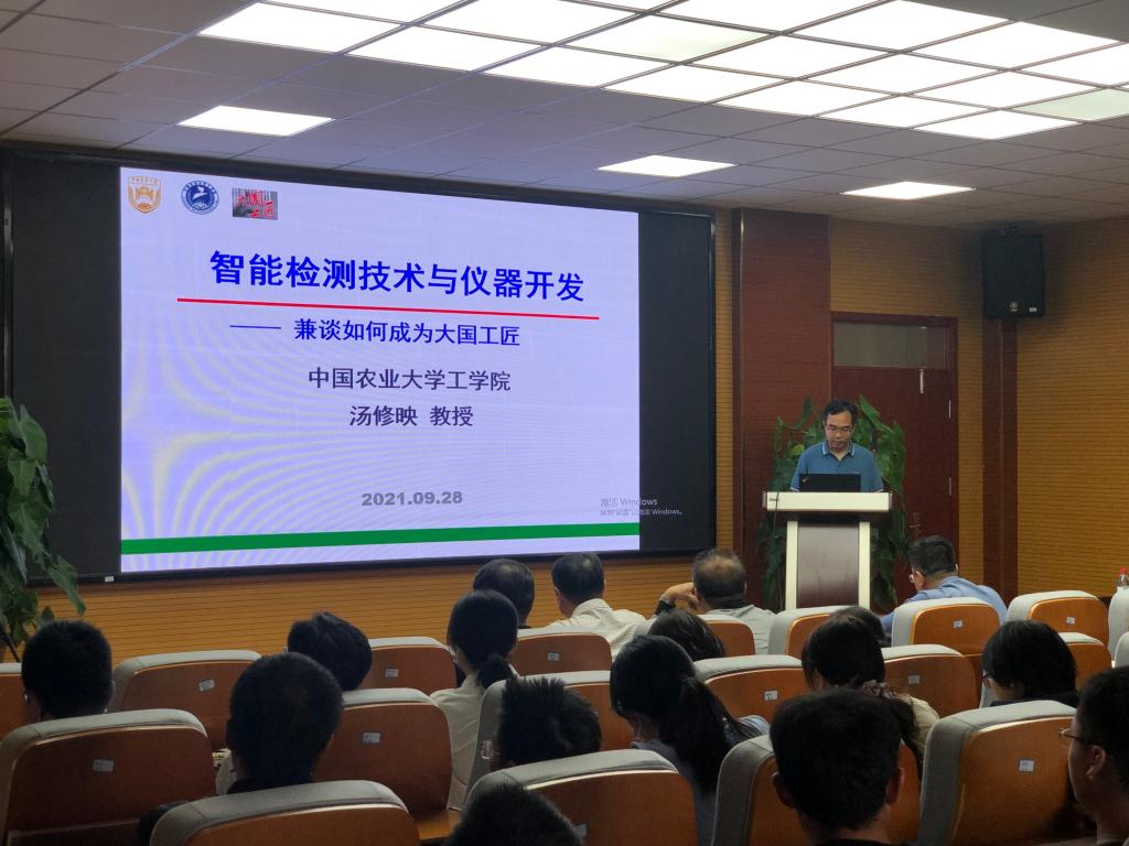 湯修映教授作了題為《智能檢測技術與儀器開發——兼談如何成為大國工匠》的報告,主要圍繞“我們身邊檢測設備的例子、智能檢測與檢測方法、儀器制造與工匠精神”等幾個方面作了深入的講解。學術報告在機電院工科樓318會議室,機電院黨委副書記、院長王旭峰,副院長張宏、張有強及師生代表聽取學術報告。