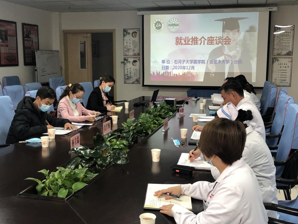 為進一步貫徹落實好國家、自治區及兵團出臺的各項就業政策,緊緊圍繞兵團發展需求,充分了解醫學行業人才需求現狀及就業市場,認真做好醫學院就業工作,12月16日至18日,醫學院就業推介工作組赴阿克蘇地區各縣市的醫院,開展人才市場調研及就業推介工作。