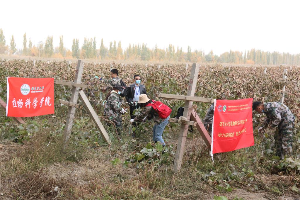 為助力脫貧攻堅,引導廣大青年學子深入基層一線,投身新時代“三農”工作,10月26日,由植物科學學院黨委副書記朱天生、園藝林學系張琦教授以及園藝專業60余名學生組成的實踐團走進13團21連葡萄園開展調研服務。