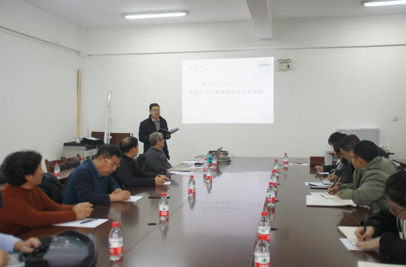 12月25日,《塔里木大學學報》編輯部,特邀山東科技大學黃仕軍編審、青島農業大學傅建祥編審、中國海洋大學龐旻編審、中國科學院海洋研究所聯合編輯部梁德海編審,作了題為“學報戰略研討與編輯培訓”的系列講座。學報編委會委員、學科編輯及在讀碩士研究生代表聆聽講座。上午的培訓會和下午的報告分別由科技處負責人、《塔里木大學學報》副主編孟慶峰,科技處副處長馬瓊主持。