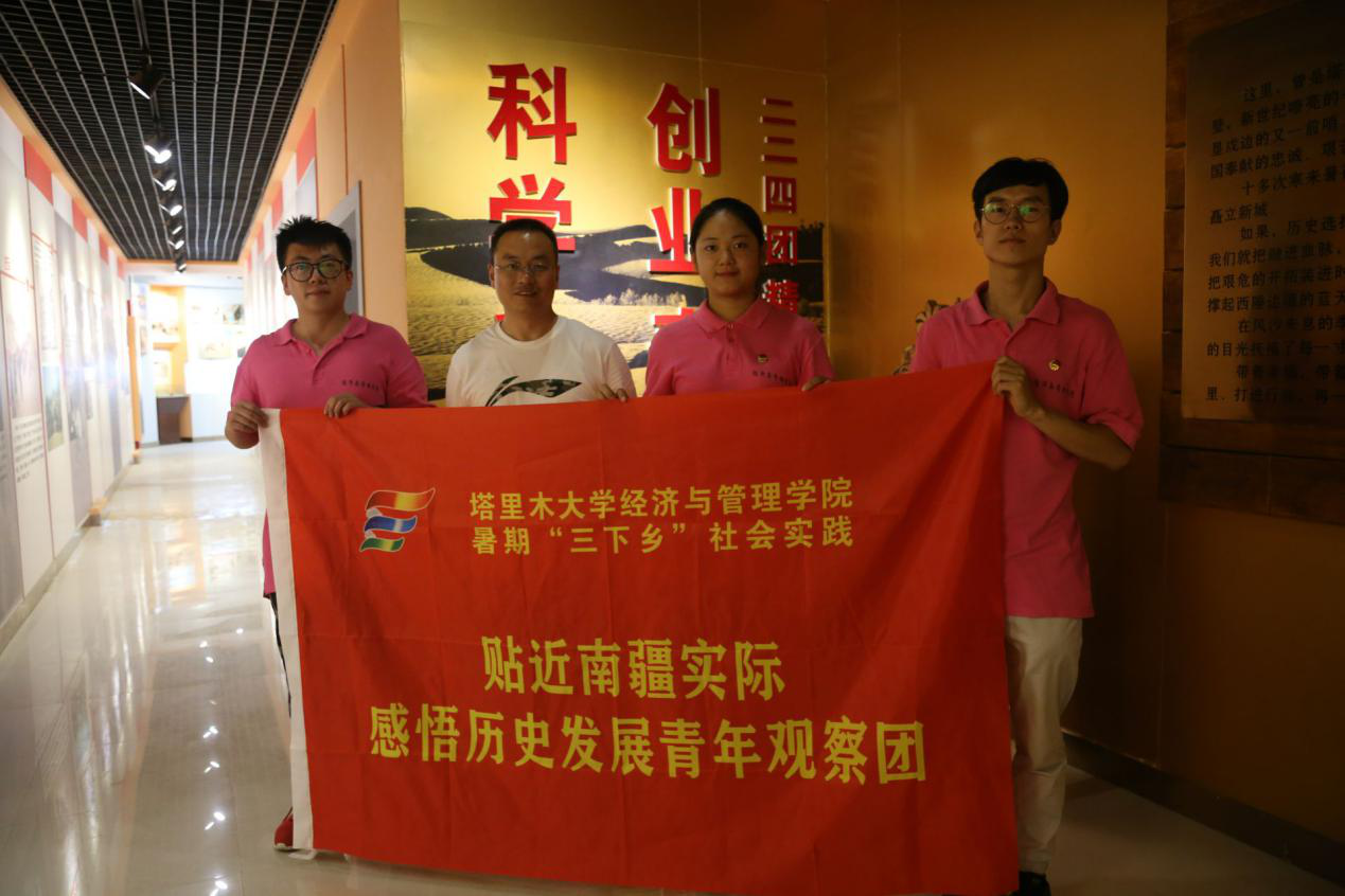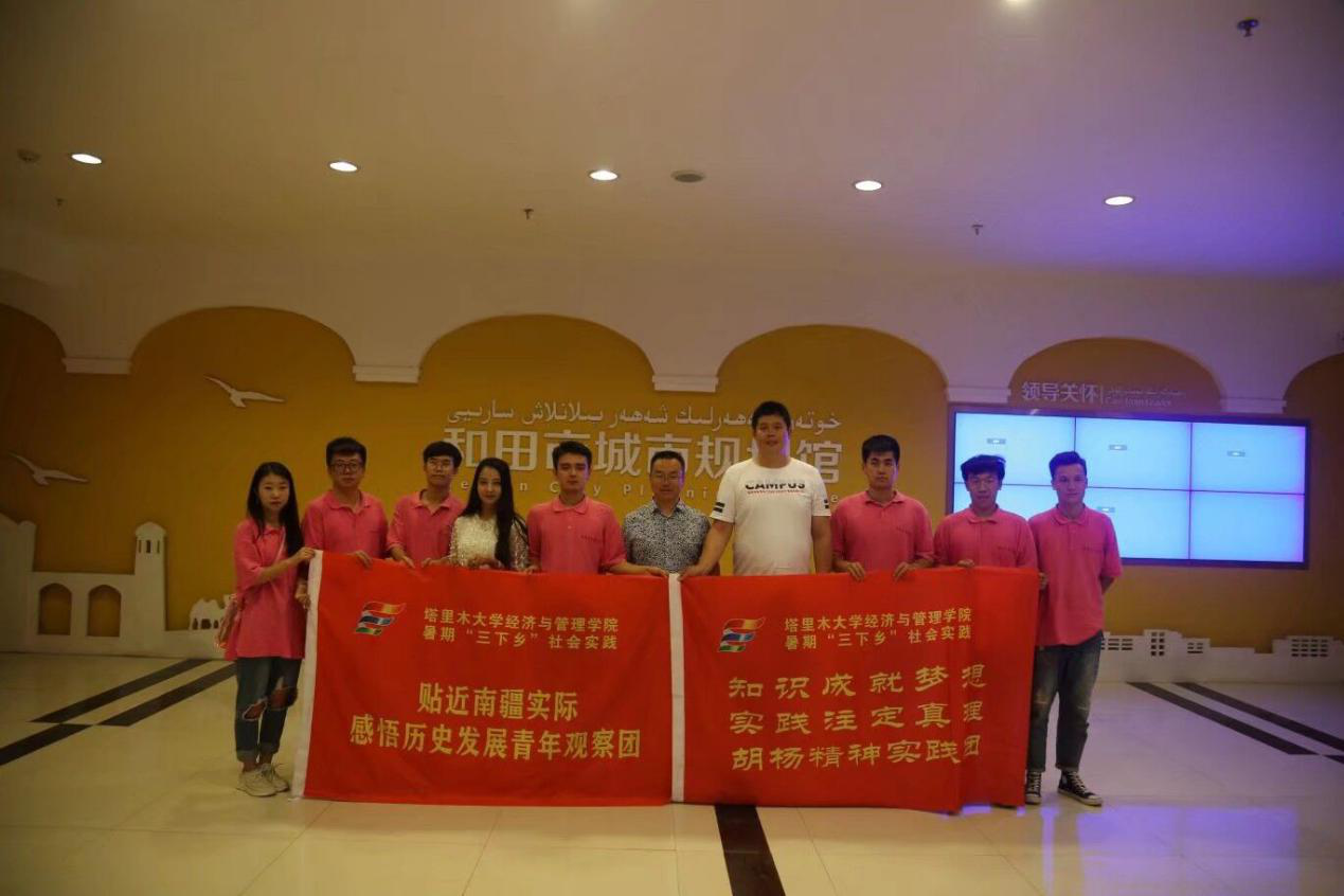 用青春腳步丈量祖國大地,用青春力量服務南疆發展。7月6日至16日,塔里木大學經濟與管理學院“貼近南疆實際,感悟歷史發展”青年觀察團在和田市、墨玉縣、224團、47團、于田縣、225團等地,開展暑期三下鄉社會實踐活動。實踐團成員在指導老師的帶領下,沿阿和公路縱穿塔克拉瑪干沙漠,來到實踐活動目的地。此次暑期三下鄉實踐活動旨在感悟南疆發展變化,體驗兵團精神、老兵精神、胡楊精神。
