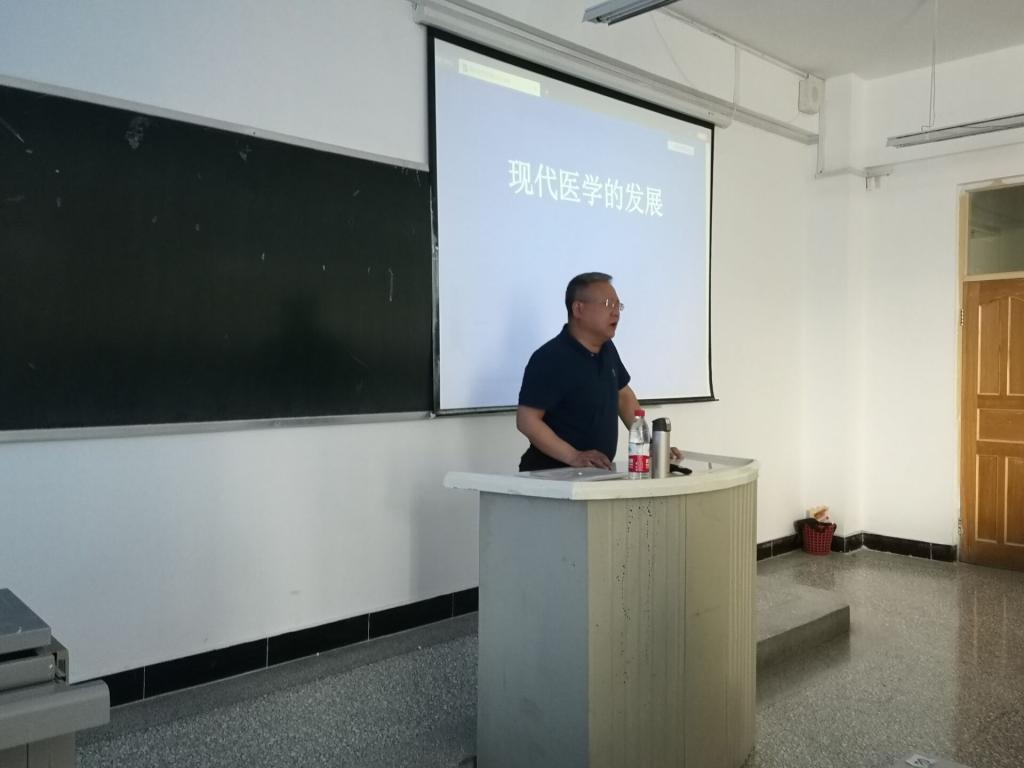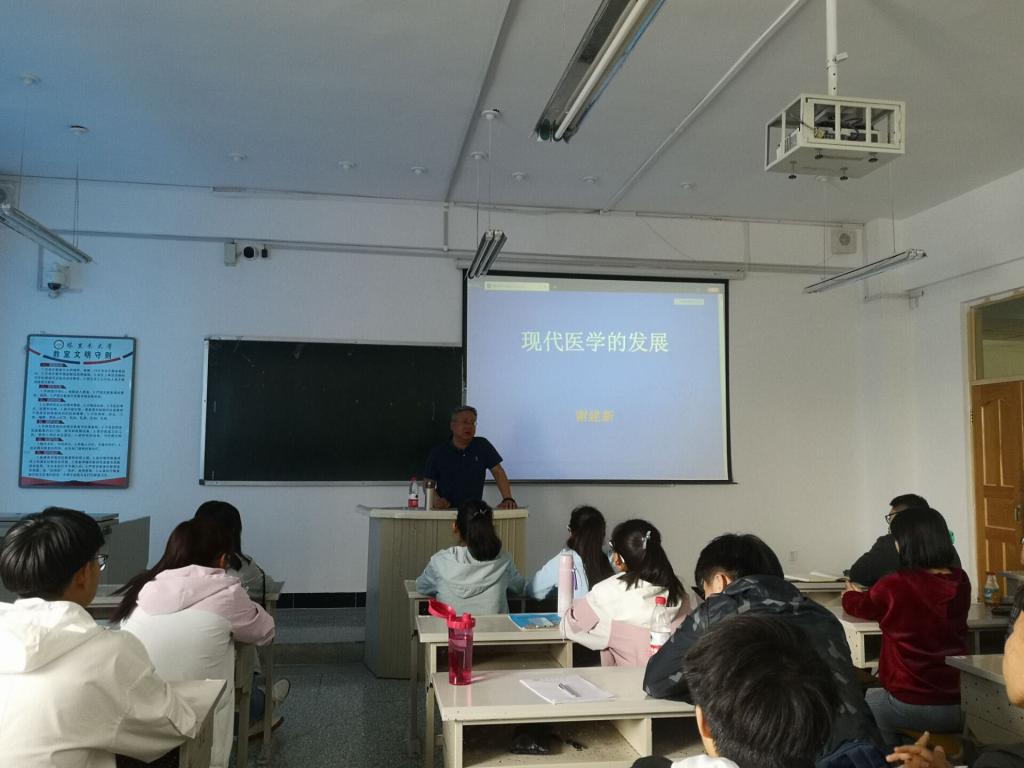 4月14日下午,石河子大學醫學院謝建新教授來校講學,在綜合樓107教室為醫學院全體學生作了《現代醫學的發展》的專題講座。