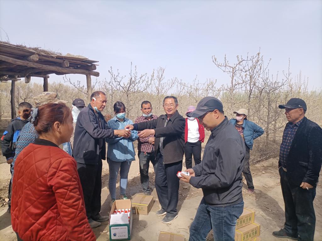 果園里,張琦教授就科學(xué)施肥、病蟲害防治等方面對(duì)果農(nóng)們進(jìn)行耐心細(xì)致講解和培訓(xùn),并親手示范,還無(wú)償送給農(nóng)戶們“母梨劑”200份,黃板400份。