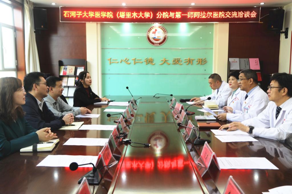 4月7日上午,我校醫(yī)學(xué)院與第一師阿拉爾醫(yī)院召開(kāi)座談會(huì)。醫(yī)學(xué)院(分院)黨總支副書(shū)記胡斌、醫(yī)學(xué)院副院長(zhǎng)曹祥龍,第一師阿拉爾醫(yī)院黨委副書(shū)記、院長(zhǎng)王志強(qiáng),黨委委員、副院長(zhǎng)譚塔林,及相關(guān)人員參加。座談會(huì)在第一師阿拉爾醫(yī)院行政樓2樓會(huì)議室召開(kāi)。