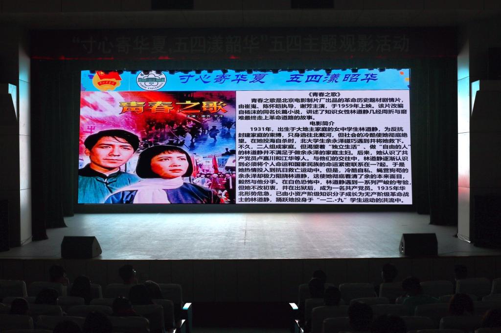 5月3日晚,校團委組織青年學生在大學生活動中心觀看影片《青春之歌》。