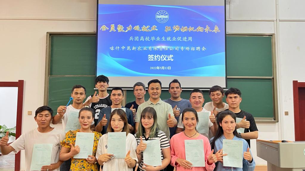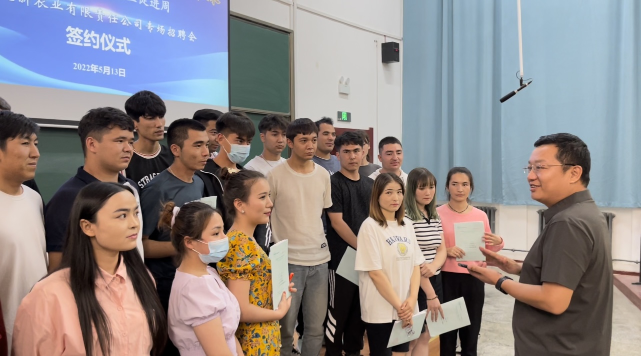 參加招聘會的學生紛紛表示,用人單位發展前景好,用工需求迫切,薪資待遇可觀。第一個成功簽約動物醫學22-1班的畢業生阿吾孜爾·阿不都卡地爾激動地說:“前段時間線上求職不太順利,今天能夠現場參加招聘會,感覺很精準,跟這一家公司交流的很好,覺得很有發展潛力,參加公司面試并成功簽約了,我和父母都特別高興。”