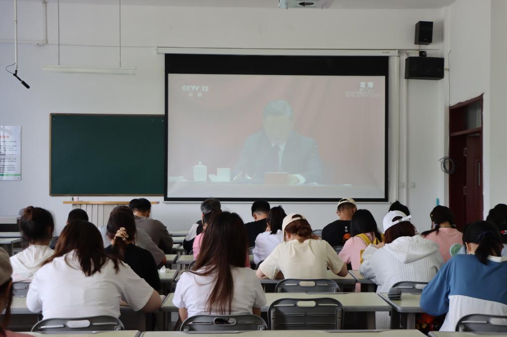 5月10日上午,人文學院師生在新文科樓各教室、會議室收看習近平總書記在慶祝中國共產主義青年團成立100周年大會上重要講話。
