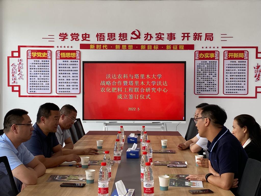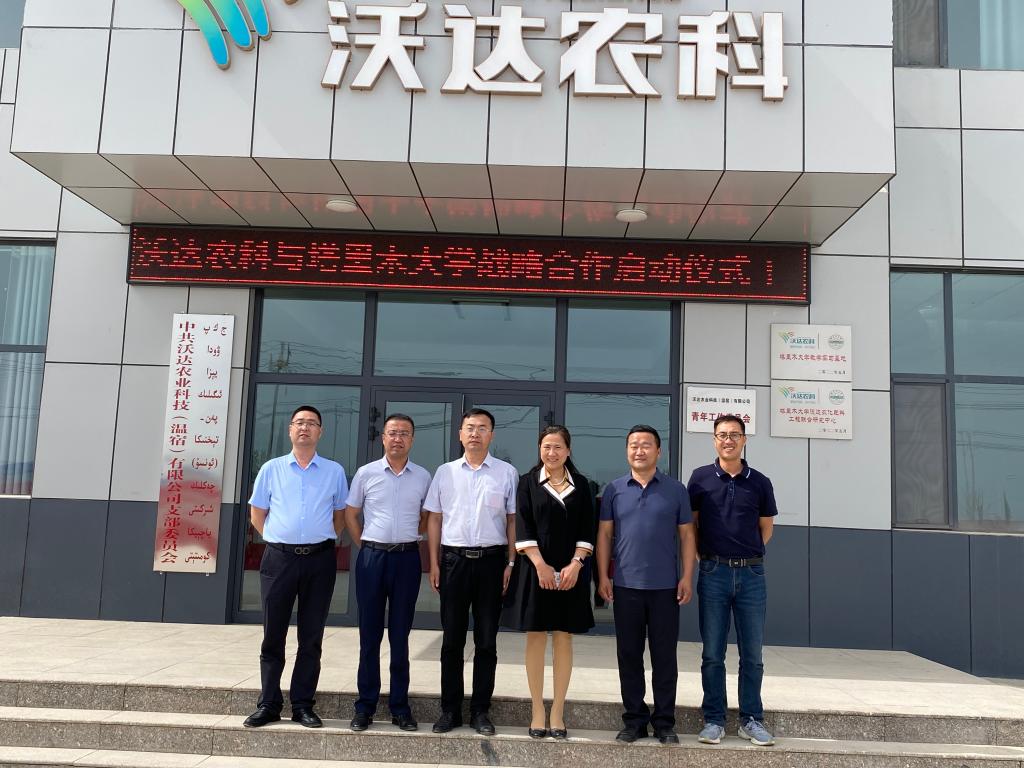 5月20日,應沃達農業科技有限公司邀請,農學院院長萬素梅教授、南疆綠洲農業資源與環境研究中心主任支金虎教授、農藥化肥專業負責人董紅強教授等一行,赴新疆沃達農業有限公司座談交流。雙方簽訂了“塔里木大學創業實習基地、塔里木大學沃達農化肥料工程聯合研究中心共建協議”并舉行掛牌儀式。