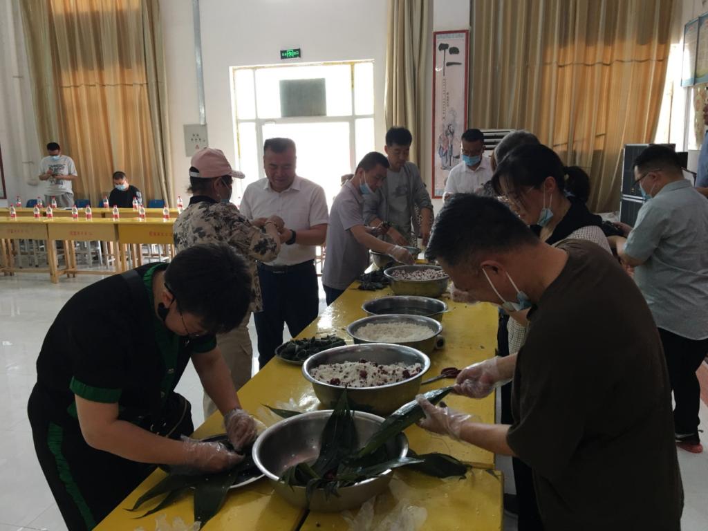 一起包粽子,話團結、敘友情、聊生活、拉家常,了解他們的工作、生產、生活情況。