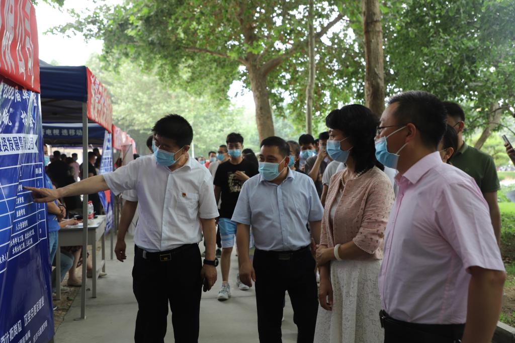 校領導來到招聘現場與企業深入交流,了解招聘需求及招聘計劃,并向用人單位推薦優秀畢業生。