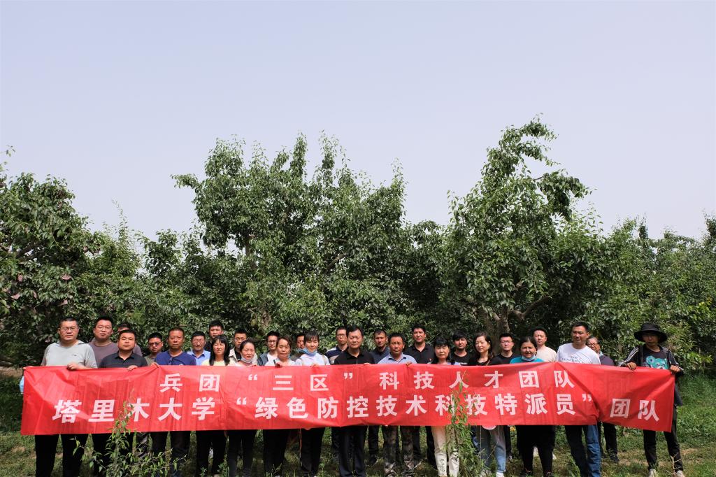 5月25日至26日,我校農(nóng)學(xué)院馮宏祖教授帶領(lǐng)綠色防控技術(shù)科技特派員服務(wù)團(tuán)隊(duì)成員王蘭教授、曹玉副教授、郝海婷副教授等一行9人,赴三師44團(tuán)9連、50團(tuán)夏河營、53團(tuán)良種連等6個(gè)示范園(田),就蘋果枝枯病防控、香梨無人機(jī)授粉、棉花和小麥病蟲害綜合防控進(jìn)行現(xiàn)場培訓(xùn)。第三師農(nóng)業(yè)技術(shù)推廣站書記曹栓柱、農(nóng)業(yè)農(nóng)村局相關(guān)負(fù)責(zé)人、團(tuán)場科技骨干和周邊農(nóng)戶等40余人參加培訓(xùn)。