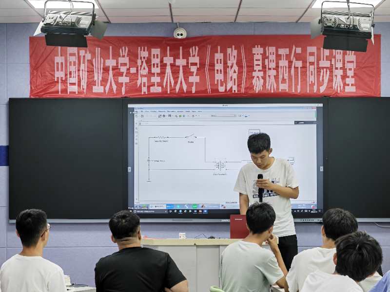 6月15日下午,塔里木大學、中國礦業大學在綜合教學樓128智慧教室共同開展慕課西行共上《電路》一堂課。塔里木大學機械電氣化工程學院副院長張宏,教師鄒夢麗,中國礦業大學信息與控制工程學院黨委書記張磊,信息與控制工程學院院長程德強,教師周一恒,以及兩校學生代表參加。
