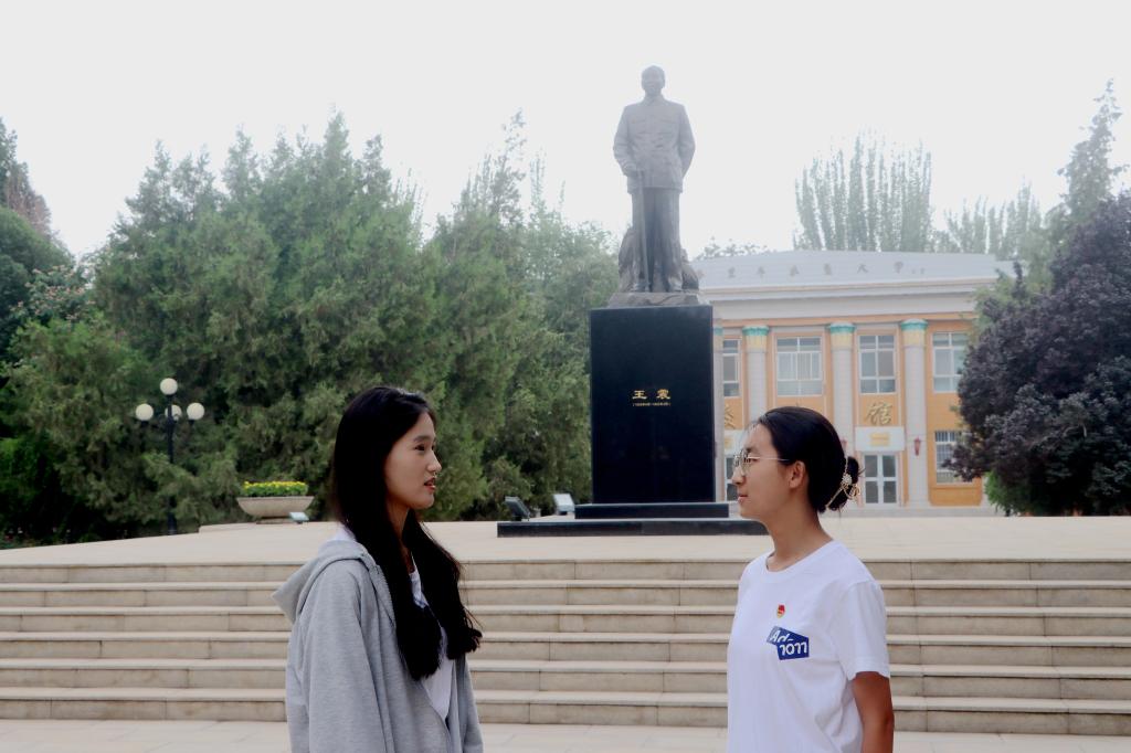 一場大雨過后,盛夏的南疆清晨,湛藍的天空中夾雜著一絲絲涼意,道路兩旁的樹木花草干凈如洗。塔里木大學紅色文化廣場上,王震將軍銅像聳然矗立,道路兩旁的松柏傲然挺立。