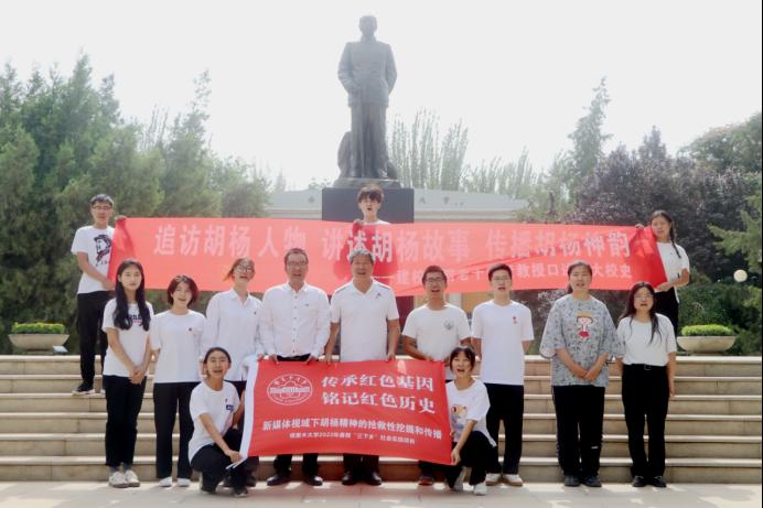 訪談結束后,團隊全體成員圍著王合理教授,先后來到建校初期老校門、紅色文化廣場、王震將軍銅像、校史館,耐心聆聽王合理教授講述學校的崢嶸歲月和自己的心路歷程。