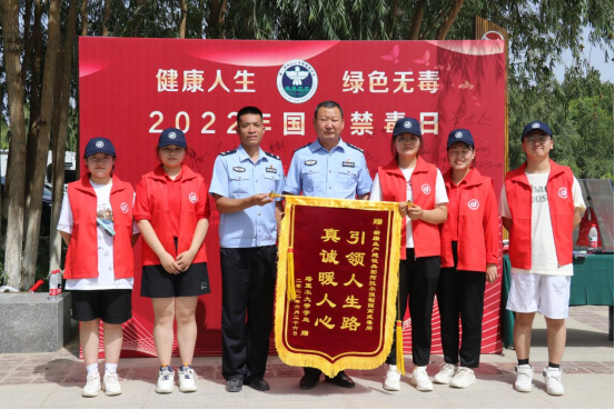 團隊為戒毒所贈送錦旗,表達對社會公益工作者的敬意。