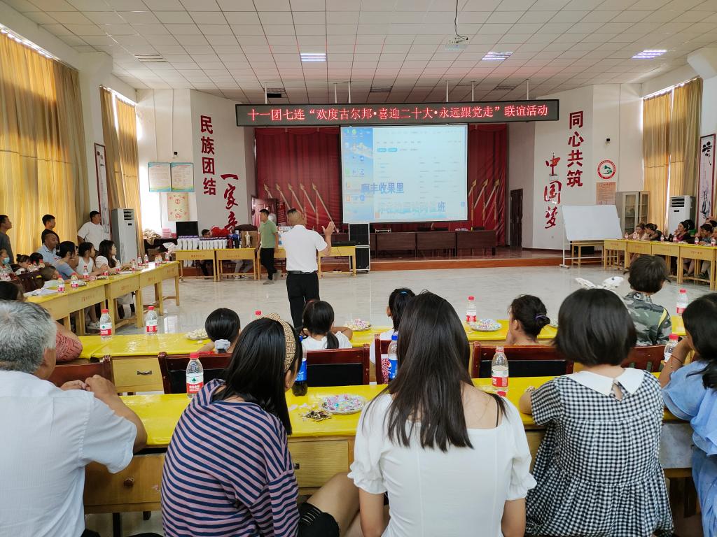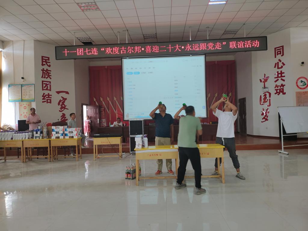 7月11日下午,十一團七連黨群活動中心熱鬧非凡,連部大院成了歡樂的海洋。在民族傳統(tǒng)佳節(jié)—古爾邦節(jié)來臨之際,為營造喜慶歡樂祥和的節(jié)日氛圍,展現(xiàn)職工群眾安居樂業(yè)、連隊優(yōu)美宜居環(huán)境,喜迎黨的二十大勝利召開,“訪惠聚”工作隊和連隊“兩委”特別為連隊職工組織了一場“歡度古爾邦·喜迎二十大·永遠跟黨走”為主題的民族團結(jié)聯(lián)誼活動。