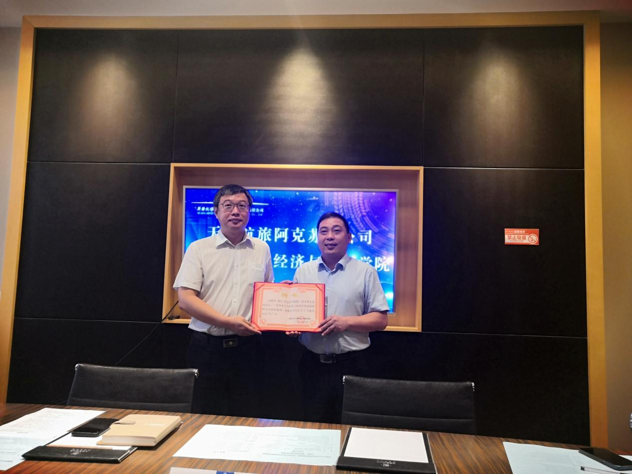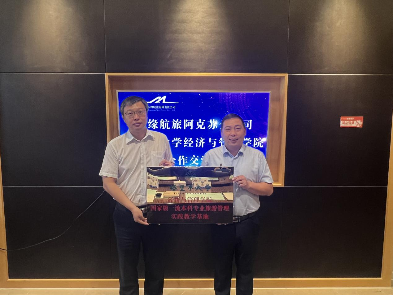 洽談校企合作事宜,共建實踐教學基地,助力南疆文旅融合發展。為推進我校國家級一流本科專業建設點(旅游管理專業)建設,7月16日下午,塔里木大學旅游管理實踐教學基地授牌暨國家一流本科專業兼職教師聘任儀式,在阿克蘇天緣國際酒店3號會議室舉行。