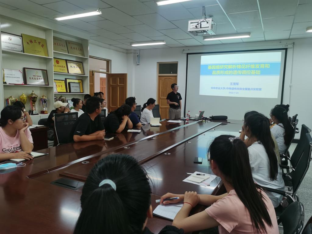 為加強(qiáng)高校間學(xué)術(shù)交流,推進(jìn)學(xué)院科研多元化,提升我校科研水平,7月23日、7月25日分別邀請(qǐng)了華中農(nóng)業(yè)大學(xué)王茂軍、劉克德教授來校學(xué)術(shù)交流。分別為農(nóng)學(xué)院師生做了主題為《基因組研究解析棉花纖維發(fā)育和品質(zhì)形成的遺傳調(diào)控基礎(chǔ)》和《CYP78A控制作物果實(shí)和種子大小的關(guān)鍵基因》的學(xué)術(shù)報(bào)告。報(bào)告由農(nóng)學(xué)院副院長(zhǎng)翟云龍教授主持,農(nóng)學(xué)院在校師生在農(nóng)科樓227會(huì)議室參加報(bào)告會(huì)。