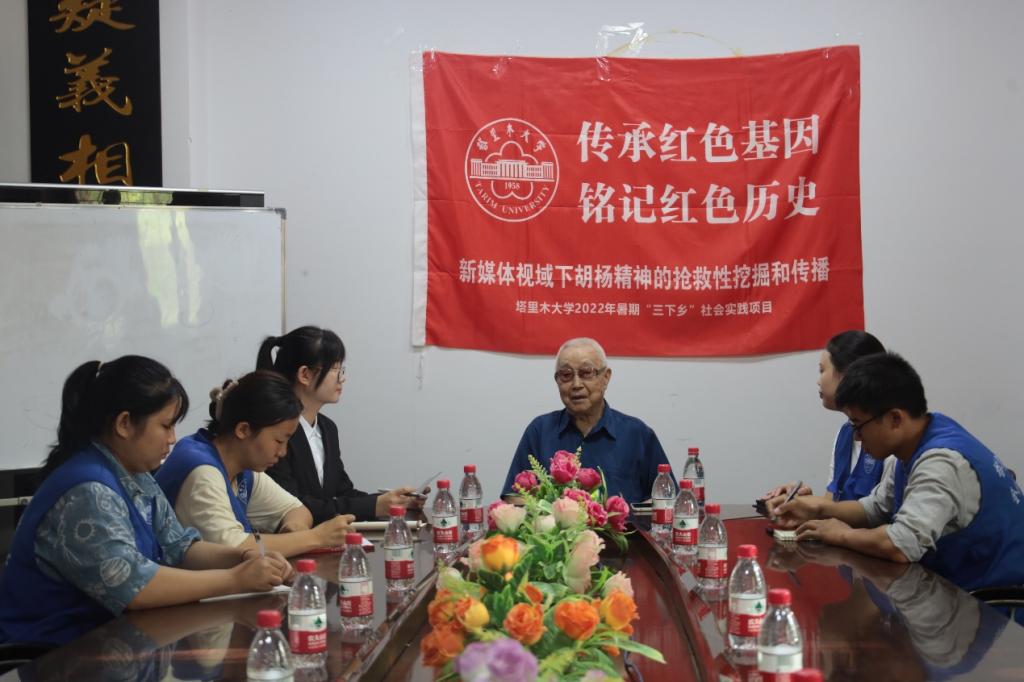 八月塔大,校園流影,驕陽似火,佳木繁陰,胡楊學(xué)子走近胡楊人物,在日光斑駁的樹蔭下,傾聽退休老教授口述學(xué)校歷史。