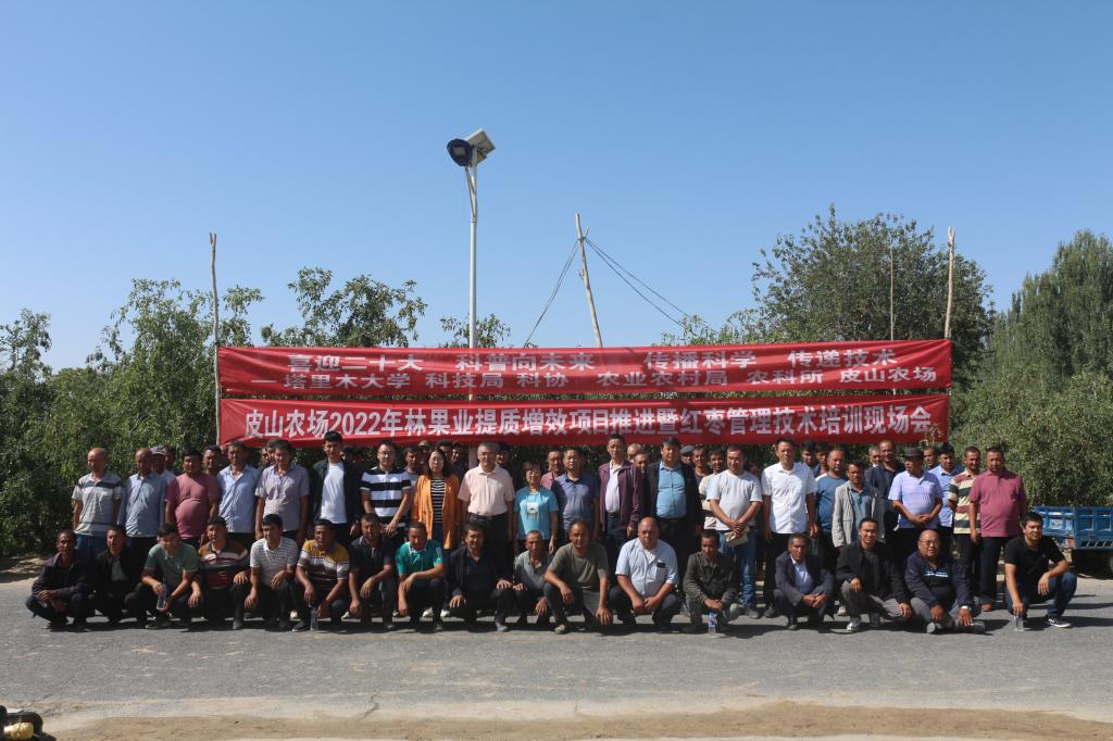 為全力配合全國(guó)“喜迎二十大,科普向未來(lái)”活動(dòng),9月4日至8日,我校林果科技特派員團(tuán)隊(duì)吳翠云教授、王新建教授、董紅強(qiáng)教授,林敏娟教授、張宇陽(yáng)副教授,赴第十四師224團(tuán)、47團(tuán)、皮山農(nóng)場(chǎng)及新疆盛世華強(qiáng)農(nóng)業(yè)科技有限公司開展夏季果樹管理技術(shù)培訓(xùn)。昆玉市科協(xié)、農(nóng)科所、十四師農(nóng)業(yè)農(nóng)村局相關(guān)領(lǐng)導(dǎo)及皮山農(nóng)場(chǎng)無(wú)花果種植基地、盛世華強(qiáng)公司相關(guān)負(fù)責(zé)人,團(tuán)場(chǎng)林果業(yè)科技骨干和連隊(duì)農(nóng)戶等多人參加了此次活動(dòng)。