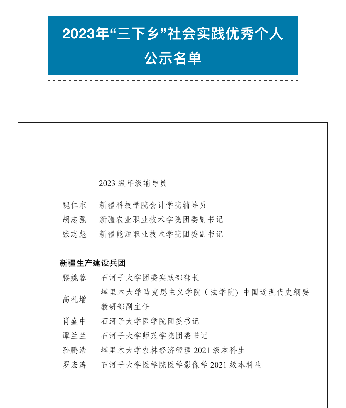 2023年“三下鄉(xiāng)”社會實踐優(yōu)秀個人: